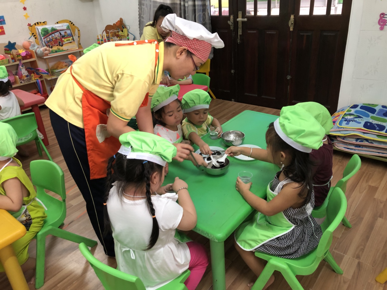 • Bé lớp lá 3 CS 3 tập làm nội trợ, hôm nay con được cô dạy làm bánh mì kẹp thịt vui lắm mẹ à, từ đây mẹ hãy để con được phụ mẹ một tay mẹ nhé!