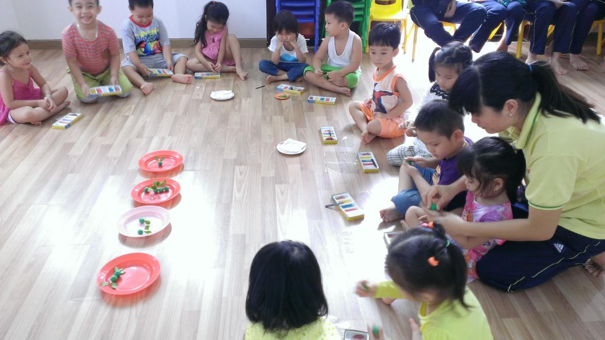 • Các bé lớp Chồi 1 - CS4 say sưa, hứng thú với tiết học " Tập nặn quả cam "