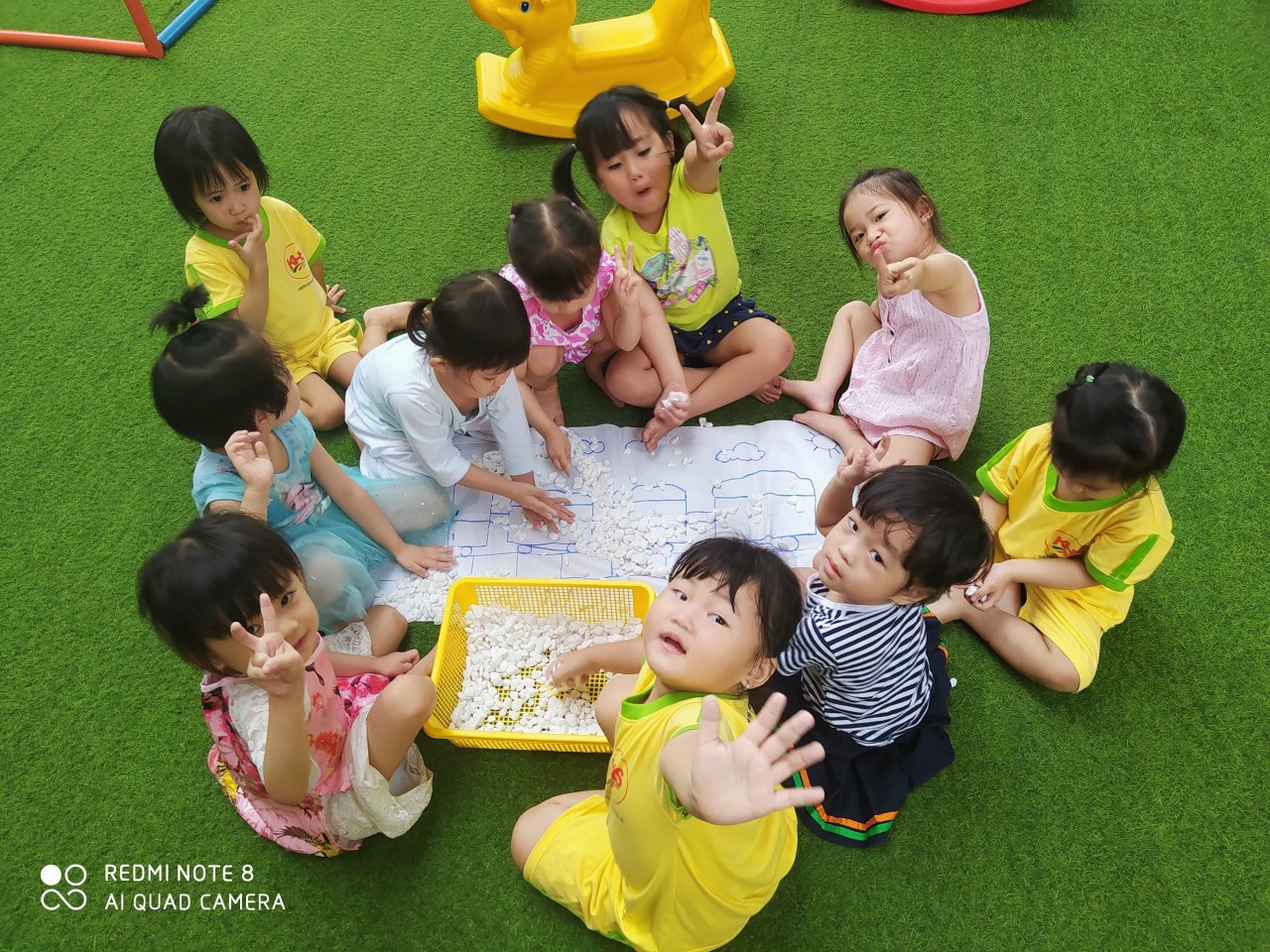 Có vẻ các bé rất hào hứng với những hoạt động ngoài trời. Cũng rất hợp tác khi cô chụp hình nữa nè.